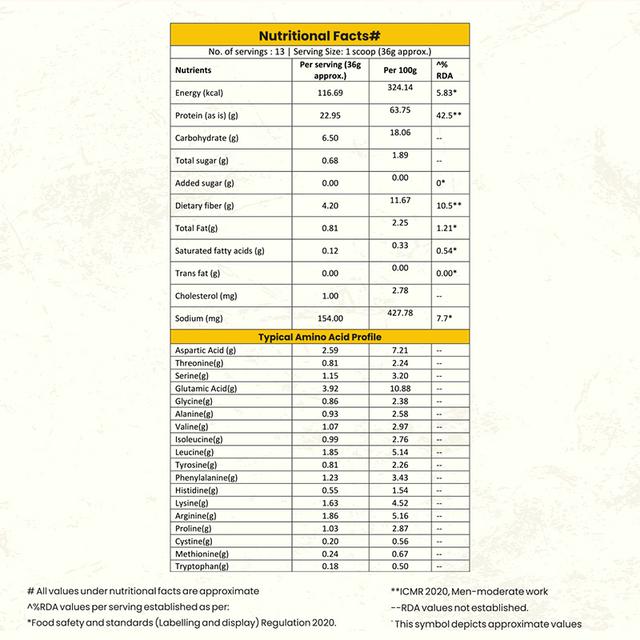 Add 1 level scoop (36g) to 250ml of cold/normal water or your favorite non-dairy beverage such as almond or oats milk or to your favorite smoothie recipe or dish.